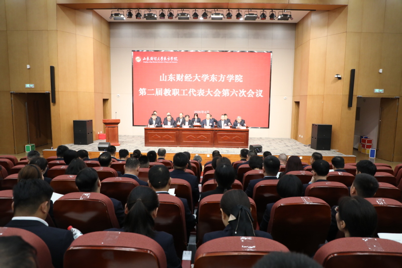 4月16日,学校在图书馆学术报告厅召开第二届教职工代表大会第六次会议。校长范玉宝,党委书记宋保峰,党委副书记江东,副校长于栋、宋凯明、孙延民及教代会主席团成员出席会议并在主席台就座。会议由江东主持。