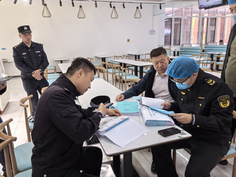 与此同时,高新区市场监管局联合公安部门深入我校食堂,开展季度食品安全专项检查。检查组严格对照食品安全监管标准,先后对食堂原材料仓库和冰箱间进行现场查看,重点对猪肉、禽类等生鲜肉类的进货台账、产品质量检验报告及动物检疫合格证明等关键资料进行了现场核查指导,并提出优化建议。饮食服务处全程配合检查工作,认真记录整改要求,坚决做到立行立改、长效管控,始终把师生饮食安全放在首位,全力保障校园餐饮服务安全、规范、有序。