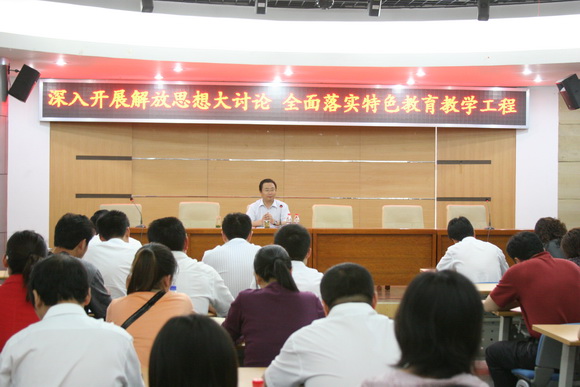 5月29日下午,常务副院长、分党委副书记徐思生同志在坤元楼512作“进一步解放思想、全面推进校风建设”专题报告。徐院长分析了学校发展面临的形势,指出解放思想,干事创业,全面推进特色教育教学工程,实现规划目标是学校较长一段时期的中心任务,重点论述了校风建设问题。