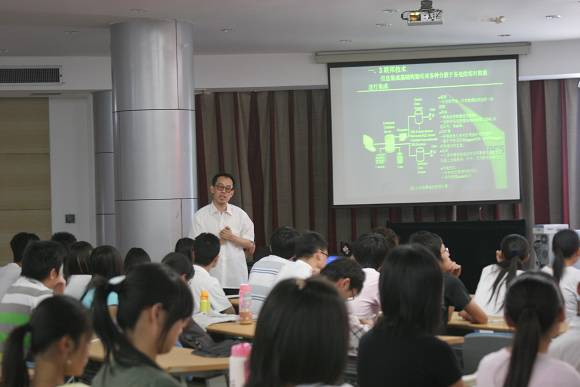 孙老师首先提出了面向对象服务的企业信息集成理论,指出了EPCS的核心为耐性、毅力和信心,要求同学们要有扎实的理论基础,丰富熟练的计算机技能,而后孙老师又根据多年以来的实践经验提出了企业信息集成技术构架的概念,并强调了客户需求以及数据缓存技术在实际应用中的重要性。最后又循序渐进,由浅入深地为同学们介绍了企业信息集成中的重要技术WEBSERVISE及终端引擎EJP、COM+等中间建设。孙老师精辟的论述,独到的见解和幽默的语言吸引了在场的每一位同学,使整个会场气氛热烈,掌声阵阵。