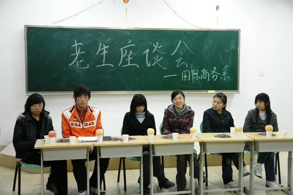 国际商务系06级雷蕾、刘星池以及07级的陈翠粉、陈妍君、张强、王俊凤同学作为毕业生代表参加此次交流会。