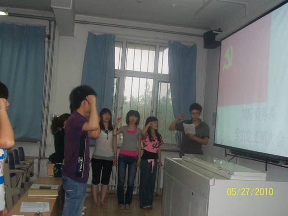 5月27日,国际商务系学生党支部在3110举行支部大会。会议由国际商务系学生党支部书记毕玉青主持。学生党员、预备党员、入党积极分子参加本次会议。