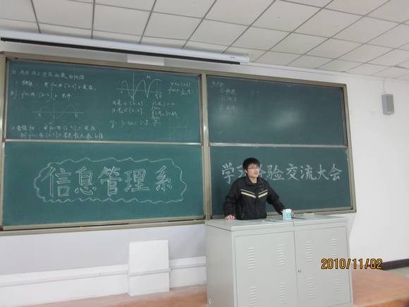 为了消除2010级新生在学习中的困惑,更好的适应大学的教学模式,信息管理系于11月2日在唯美楼5107举行学习经验交流大会。蒋丹西、李利华等学习优秀的学生以及2010级全体同学参加会议。