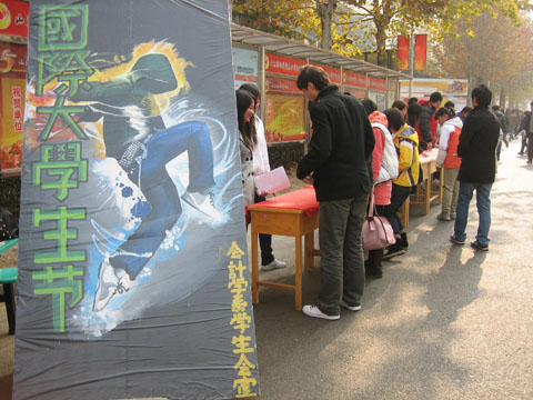 上午10:00左右,在悠扬的音乐旋律中,活动正式开始,来往的同学们对此次活动表现出浓厚的兴趣,纷纷前来咨询,会计学系学生会成员积极热情的向同学们宣传国际大学生节的意义与相关活动等。中午时分,活动进入高潮,同学们纷纷来到条幅前,在红幅上签下自己的名字与祝福,表达了自己对文化节的期盼与纪念之情。学校的许多教职工也积极参与到此次活动中来,充分传达了老师对大学生文化的肯定与重视,短短几小时红幅上就留满了同学们的名字与祝福。