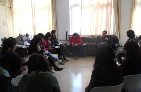 会议最后,安主任及财金系老教师耐心帮助新教师解决教学过程中遇到困扰。