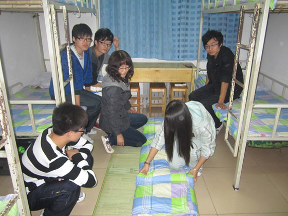 此次活动分为参观和互帮两个部分。首先是11级男生参观女生宿舍,女生宿舍整齐的物品摆设、端正的军被、明亮的宿舍环境调动了男生整理内务的积极性。男生表示要向女生宿舍学习并且邀请个别女生到男生宿舍帮助整理被褥。男生、女生互相交流叠军被的经验与方法,最后在同学们的互帮互助下,一张张整洁的床铺展现出来,每个人脸上洋溢着比晨光更灿烂的笑容,现场呈现一片和谐的气氛,同时加强了男生、女生之间的交流与认识。