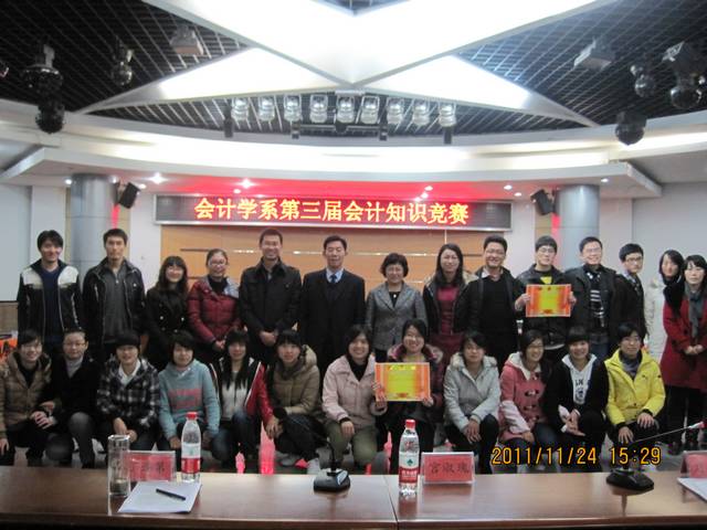 (通讯员 马明良)为进一步营造浓厚的学术氛围,激发同学们学习会计知识的积极性,培养创新人才。会计学系于11月24日在坤元楼多功能厅举办“会计学系第三届会计知识竞赛”。院分党委副书记宫淑瑰、会计学系副主任丁连第及会计学系学工办、教研室有关老师出席本次比赛。