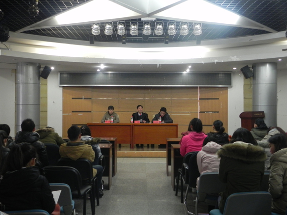 学工办孙贝老师就简历的制作和面试中应该注意的问题进行了细致的解说,对近期的校园招聘信息进行了适时的发布,最后对毕业生在校的行为规范进行了严格的要求。