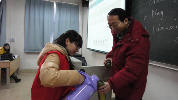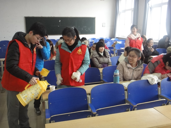 (学生通讯员 刘朋朋 摄影 万齐林)为发扬我院尊师重教的光荣传统,展现同学们感恩奋进的精神。会计学系东方骄子志愿者协会于2012年12月12号上午在唯美楼组织了“冬行东大,水暖师生”的活动,为我院师生送一杯热水,送一份温暖。