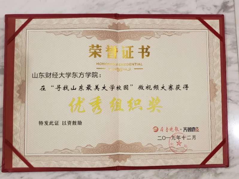 2019年12月28日,在2019高校融媒传播论坛即暨“寻找山东最美大学校园微视频大赛”颁奖典礼上,我校获得“2019年度融媒传播最具引导力高校”称号,并获得“寻找最美大学校园”微视频大赛优秀组织奖。宣传中心王学敏获得《齐鲁晚报》2019年优秀通讯员称号。