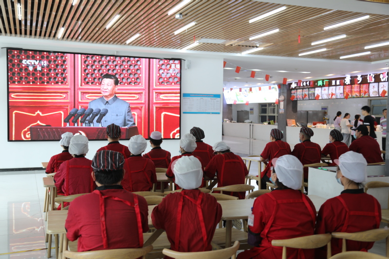部分行政管理人员在办公室收看庆祝中国共产党成立100周年大会