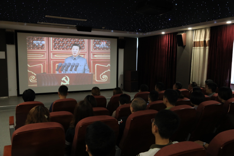 行政管理岗位党员在图书馆影视厅收看大会实况