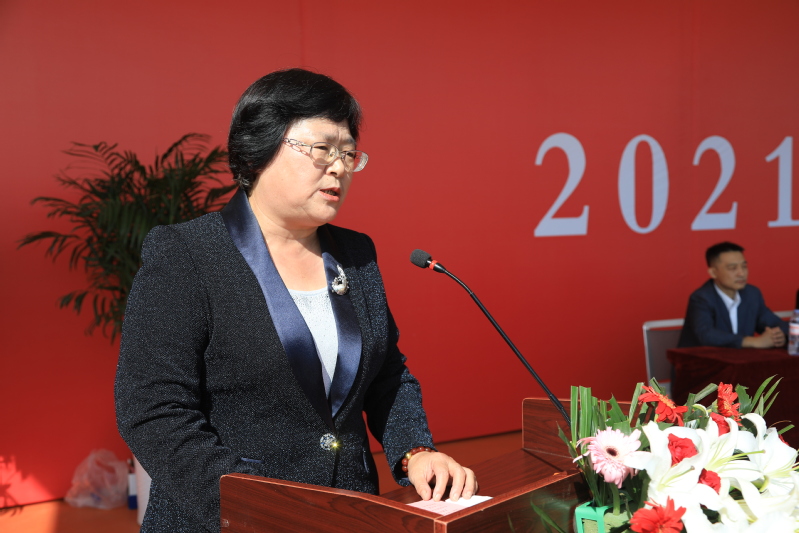院长宫淑瑰致辞,她代表全体师生对新生的到来表示欢迎,对承担本次军训的教官表示感谢,对圆满完成入学第一课和军训任务的2021级全体同学表示衷心的祝贺!