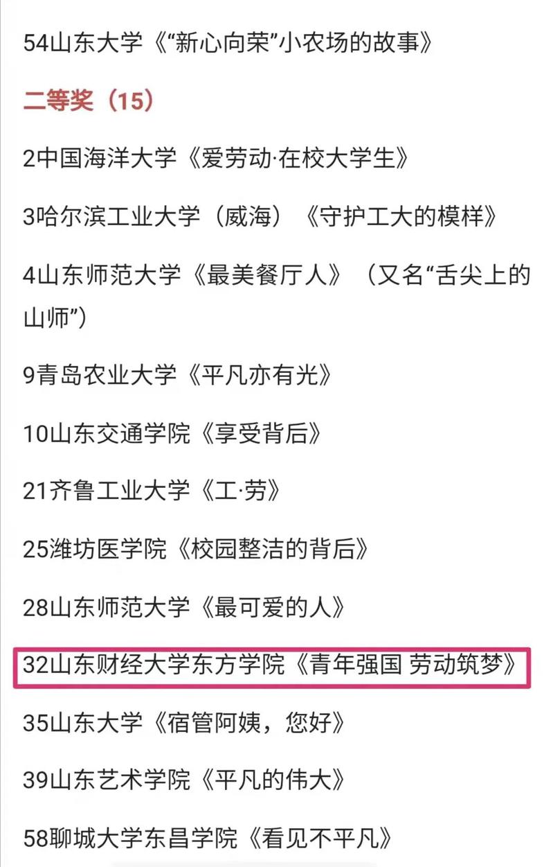 微视频作品类:殷泽、陈蕊、刘苗苗等的《青年强国 劳动筑梦》荣获二等奖;左春晖、韩希运等的《岱岳老刘》获得三等奖。