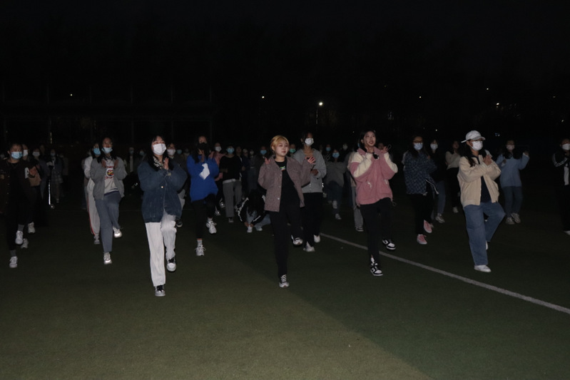 与此同时,大学生艺术团组织的广场舞活动也在火热进行,舞曲铿锵,舞姿炫酷。同学们围坐在操场中心,举着闪光灯,跟着旋律晃动,而那灯光宛如一片璀璨星河。