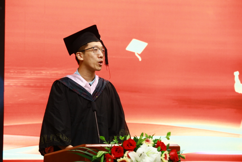 毕业生代表、国际商学院2018级国际经济与贸易专业本科二班印舣发言,他说,东大所有温暖的记忆都将铭刻在我们内心深处,那是生命中最难忘的日子。作为东大的毕业生,要记住“穷则独善其身,达则兼济天下”,多些“为天地立心、为生民立命、为往圣继绝学、为万世开太平”的士大夫情怀,牢记“厚德,明志,博学,笃行”的校训,开创我们更加美好的未来!