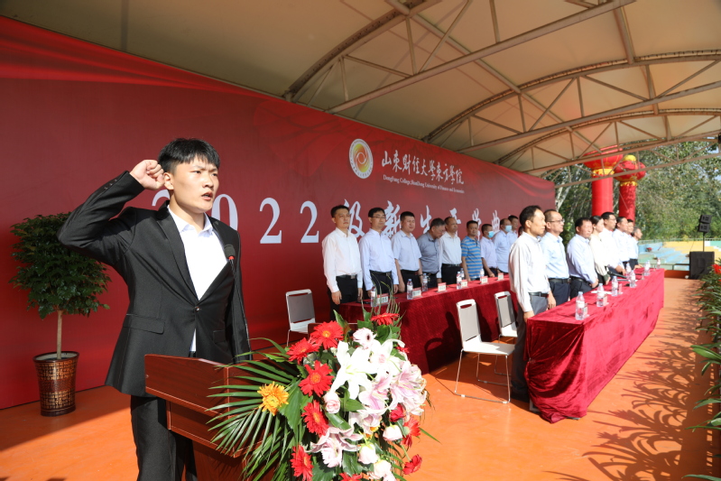 开学典礼结束前,2022级新生全体起立,共同庄严宣誓:“铭记东方校训,崇尚科学求真;谨遵校规校纪,弘扬明礼诚信;感恩师道传承,追求学精业勤;秉持坚韧独立,敢于创业创新;聚合同志同道,携手时代共进。”