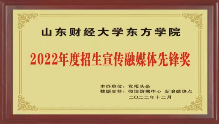 近日,我校在新浪山东2022年度教育盛典活动中,荣获“2022年度招生宣传融媒体先锋奖”。