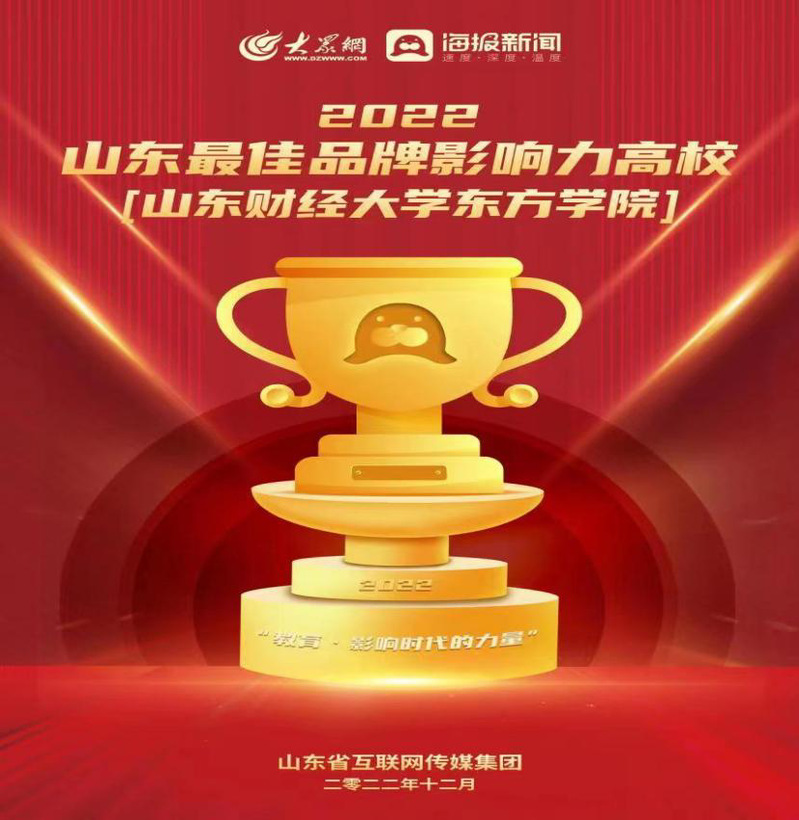12月16日,由山东省互联网传媒集团大众网·海报新闻发起的“教育·影响时代的力量”年度评选结果出炉,我校荣获“2022年山东最佳品牌影响力高校”的称号。