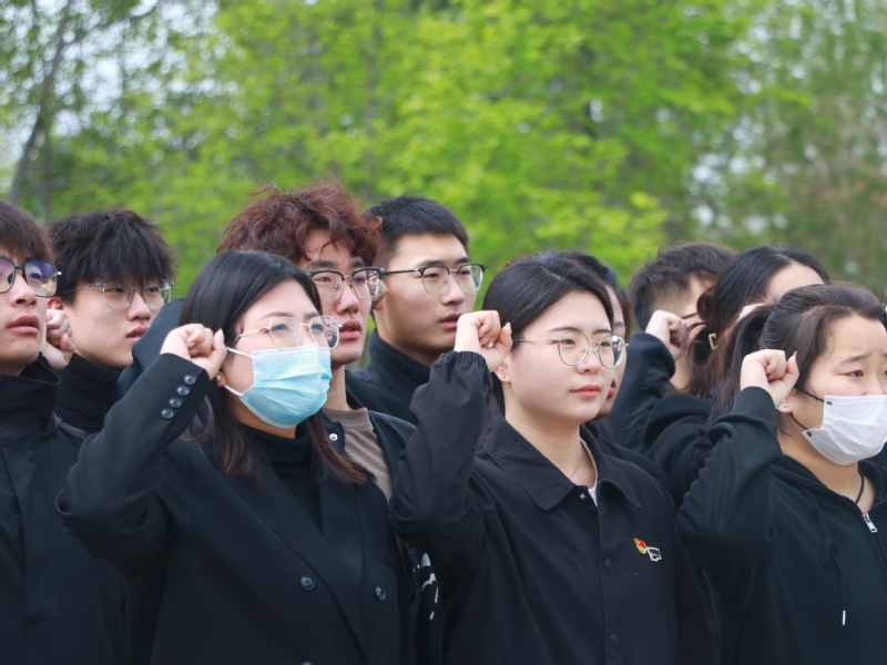 同学们举起右手,握紧拳头,庄严宣誓:“我们将继承烈士们的遗志,祖国至上,勇往无前…”,铿锵有力的誓言表达了自强自立、踔厉奋发,为建设富强、民主、文明、和谐、美丽的社会主义现代化强国奋斗的决心。