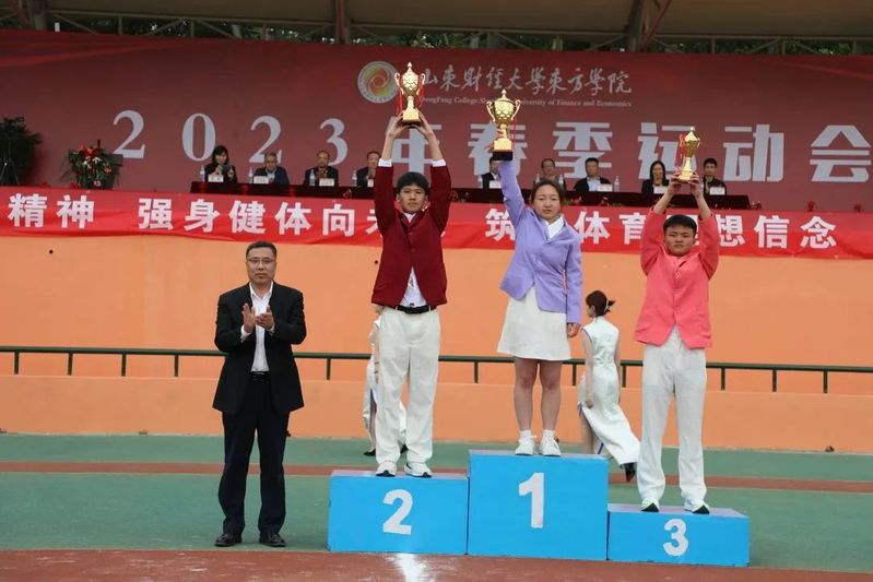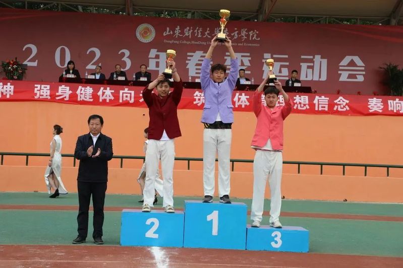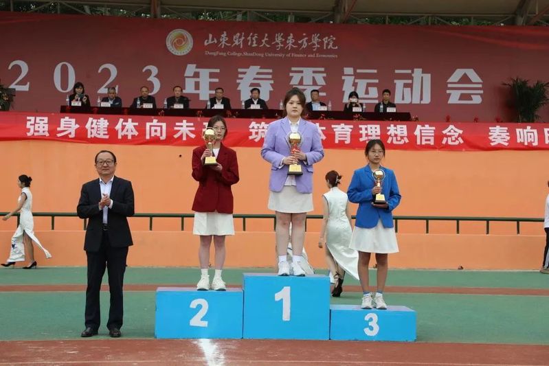 运动会副总裁判长、公共教育学院副院长郭书胜宣读了团体成绩;赛会精神文明评委会主任、党委委员、学生工作处处长王伟宣布精神文明奖、优秀组织奖、啦啦操比赛获奖单位名单。