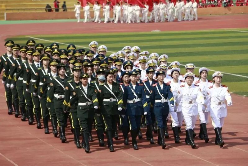 在激昂的音乐声中,各方队迈着整齐的步伐入场。他们精神抖擞,神采飞扬,铿锵有力的步伐,高亢嘹亮的口号,充分展现了朝气蓬勃的青春活力和昂扬的精神风貌。