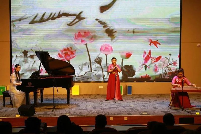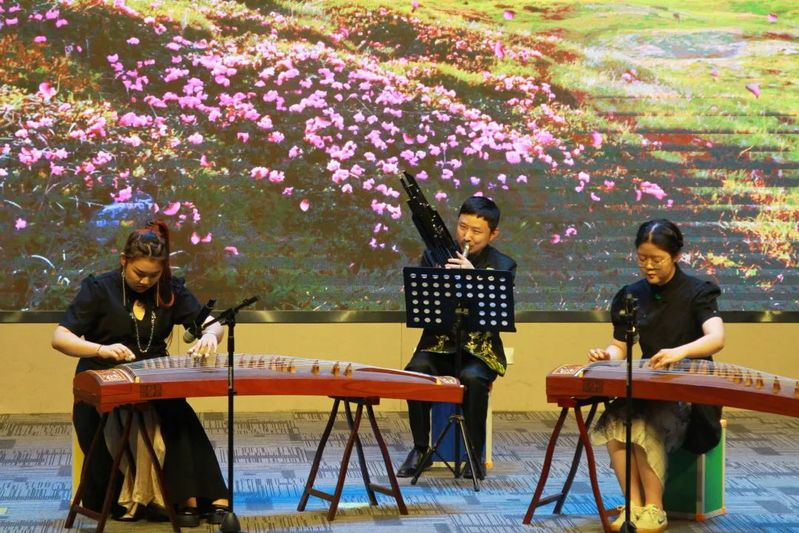 优美潇洒、娓娓动听,如一句唯美的情话,用真诚之心讲述。“明月照人古,开帘弹玉筝”,由刘嘉宁与刘英焕老师带来琵琶古筝合奏《彝族舞曲》。一曲古典之韵,书写千年的中华历史。