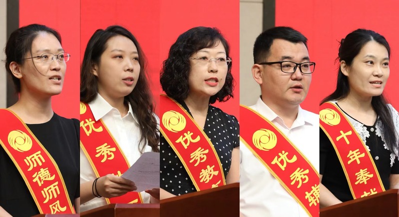 “师德师风先进个人”代表国际商学院李萍,“优秀教师”代表人文艺术学院杨梦蕾,“优秀教育工作者”代表教务科研处刘媛媛,“优秀辅导员”代表数据科学学院刘宾,“十年奉献奖”代表财税金融学院任晓洁先后发言。五位同志结合自身实际介绍了从事教育教学、管理服务的收获体验和感悟。
