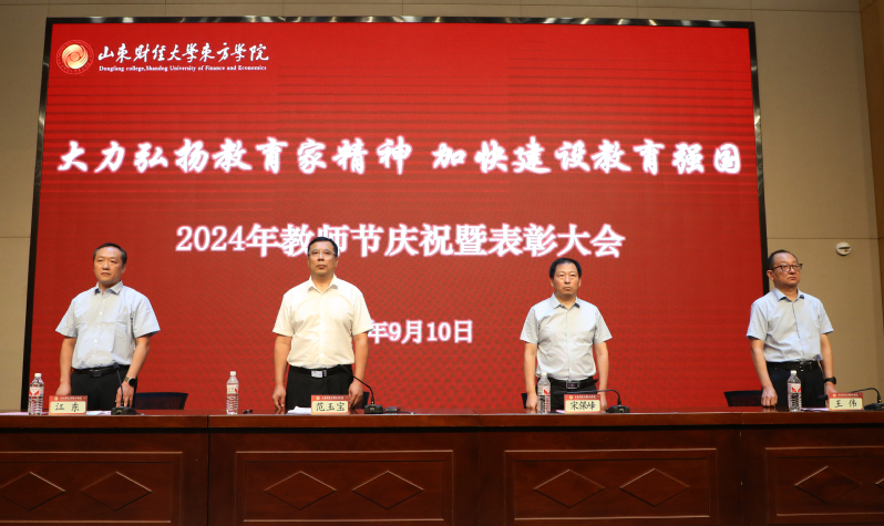 9月10日上午,hjc222黄金城官网举行2024年教师节庆祝暨表彰大会,表彰优秀典型,畅谈教育感悟,共话尊师兴教。党委书记范玉宝,党委副书记、常务副院长宋保峰,党委委员、学生工作处处长王伟,全体教职员工参会。会议由党委委员、党政办公室主任江东主持。