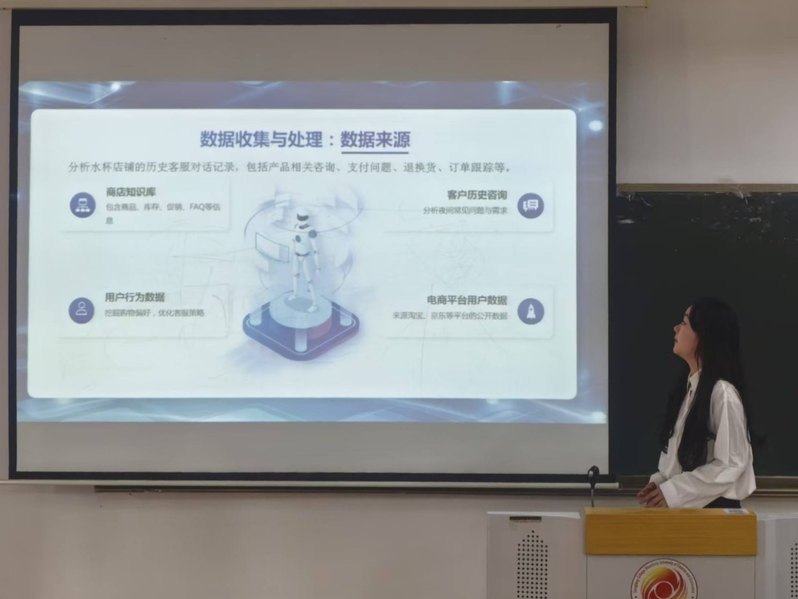 为保障校赛顺利开展,数据科学学院构建了“线上+线下”双轨组织模式。前期通过学院官网、微信公众号等线上平台发布赛事通知及报名指南,同时,组织师生多次参加线上宣讲与说明会,深入了解赛事规则、流程,学习智能体平台搭建方法和技能。在报名及备赛阶段,学院设立专项小组,通过线上答疑、线下一对一辅导等方式,为参赛团队提供数据处理、平台搭建等解决策略和技术支持,助力学生将创意转化为作品。