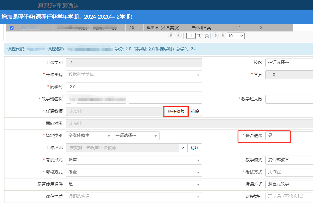 (三)开课信息确认