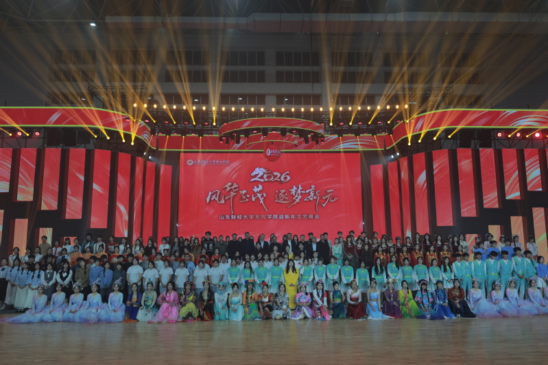 “奔赴山海 未来启航”篇章传递青年担当与奋进力量。辅导员老师与大学生艺术团联袂献唱《不要慌,太阳下山有月光》,诉说师生并肩同行的暖意;大学生艺术团模特礼仪队《光启未来》秀出学子昂扬锐气;财税金融学院音乐剧《青春》展现校园追梦日常;全体学工人员献唱《新的天地》,搭配国际商学院伴舞,描绘充满希望的动人图景。晚会在会计学院舞蹈《相亲相爱》中落下帷幕,身着各民族服饰的舞者,勾勒出中华民族大家庭相亲相爱的美好图景。