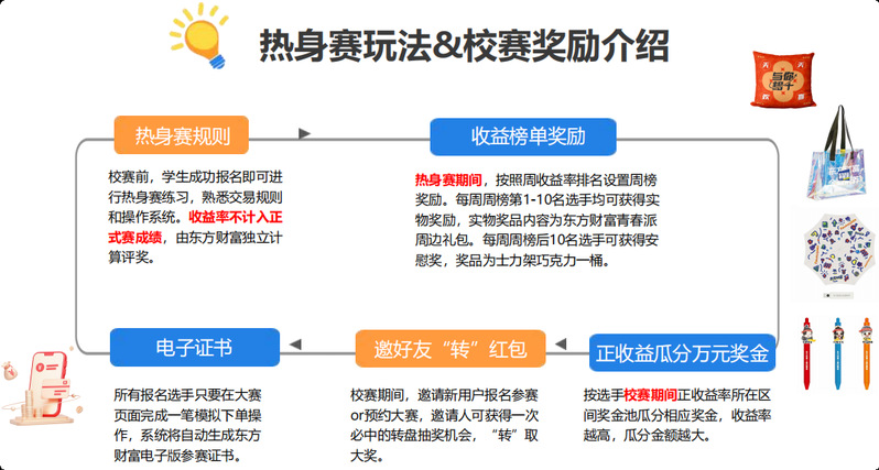 本次赛事为广大青年学子搭建高水平金融实践平台,把专业理论转化为实战能力,依托百万模拟资金真实操盘,直面市场波动、锤炼投资思维;更能与全国高校学子同台竞技,在交流比拼中拓展视野、提升金融素养。赛事兼具专业性与实践性,既是知识运用、风险把控的综合考验,也是展现青春才干、实现自我超越的重要舞台,丰厚荣誉与奖励静待优胜者。诚邀全体同学积极报名参与,在金融实践中增长才干,以青春力量拥抱时代机遇!