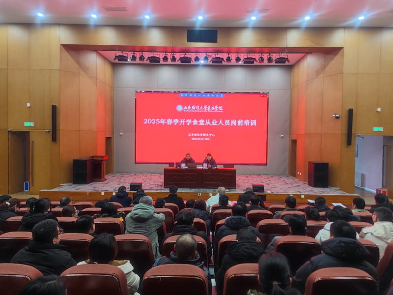 为加强食品安全,提升服务质量,2025年2月20日总务处饮食服务中心组织食堂从业人员在图书馆三楼报告厅举办了食品安全岗前大培训活动。