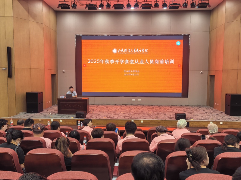 为进一步加强学校食堂从业人员的安全意识,规范操作流程,切实保障全校师生饮食安全,8月28日,饮食服务管理处在图书馆报告厅组织开展食堂从业人员岗前大培训活动。泰安高新区消防救援大队参谋游文迪、泰安市港华燃气公司客服部安检主任宗为民、饮食服务管理处副处长张昌乐分别从消防安全、燃气安全、食品安全三部分进行了培训,参加培训人员100余人。