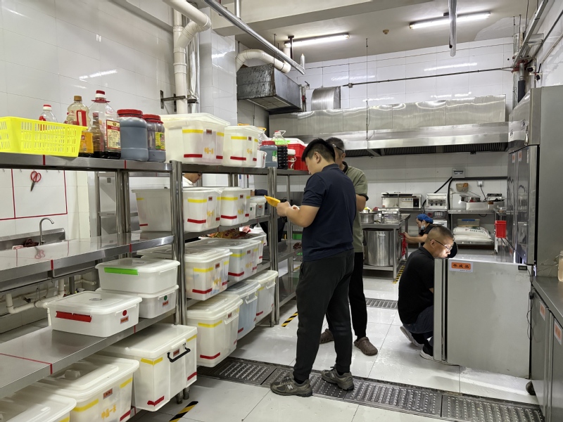 为进一步强化学校食堂食品安全管理,切实保障师生饮食健康,9月26日晚8点,饮食服务管理处组织开展餐厅夜间突击检查。本次检查由副处长张昌乐带队,饮食服务管理处6人组成专项夜检小组,以“拉网式排查、全方位覆盖”为原则,重点对餐厅一到三楼各关键区域展开细致核查。