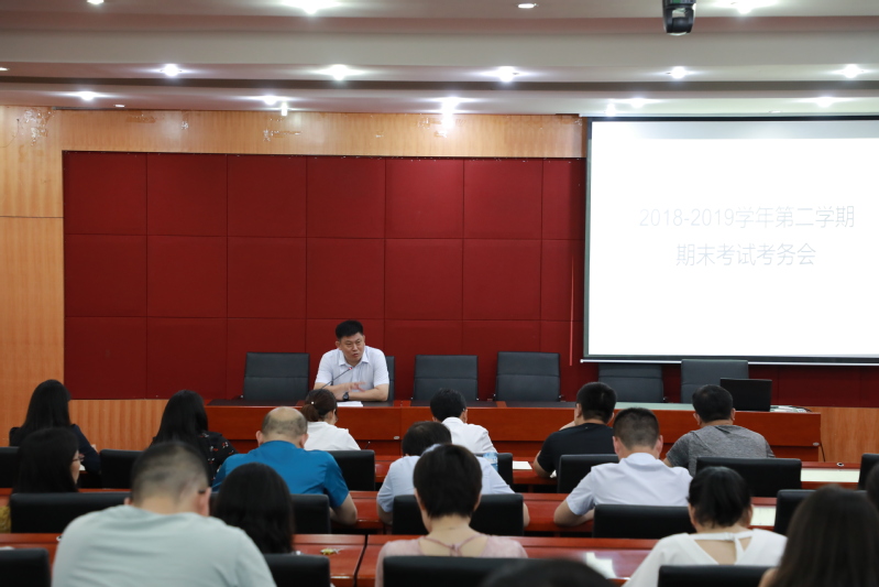 我校本学期期末考试于7月1日上午开始,为加强考试管理,严肃考试纪律,6月28日下午教务处在5306报告厅召开了期末考试考务会议,教务(科研)处处长宋凯明主持会议并讲话,全体监考教师及学生处、教务处有关人员参加了会议。