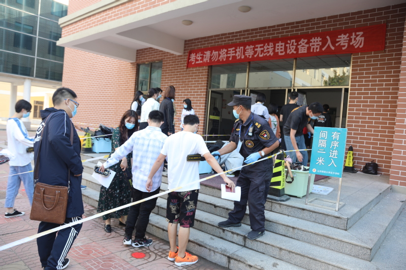 本次考试专设了疫情防控组,制定、细化考试防疫工作方案,做好了考试突发疫情应急处置。学校防疫物资准备充足到位,设置专用防疫特殊通道和隔离考场,抽调相关人员负责疫情防控工作,证件检查、体温检测、清洁消毒等各项工作有条不紊。