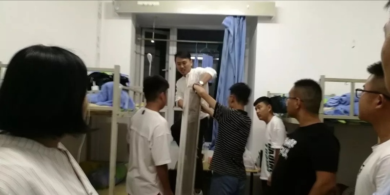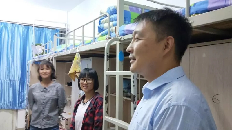 杨老师与2018届新生进行了亲切交流,结合2018届我系毕业生就业方向与不同专业的学生进行了介绍,并引导鼓励学生积极做好学业规划,尽快适应新的大学生活;当看到新生桌上自己准备的专业书籍时,杨老师表示大一开学就对自己的专业课程做了充分的准备,倍感欣慰。高贤敏老师强调宿舍卫生,宿舍要随时保持整洁,门口垃圾及时处理,经常通风。养成良好的生活习惯,宿舍不能点蚊香,以防失火。张丽老师重点强调宿舍安全问题:晚上最好不要单独外出,如果要外出,最好是多人出行,尤其是女生宿舍,不要给陌生人开门等;不要把宿舍钥匙放在门外。一旦出现有什么问题,及时与老师联系。辅导员们还强调了收费诈骗问题,不要相信任何去宿舍收费的人。在交流的过程中,何堃老师发现有些宿舍的窗户没有纱窗,为了让新生能够有一个舒适的宿舍环境,他及导生当场为其宿舍安装纱窗。