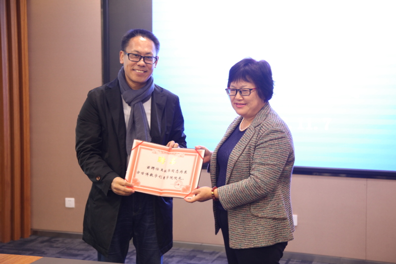 揭牌仪式结束后,王振华在坤元楼多功能厅给我系第一届数媒专业的学生作了题为《跟理想聊聊天》的讲座,由院长宫淑瑰主持。