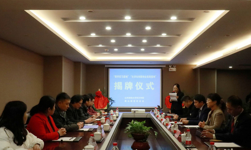 1月2日,为推动在校大学生创新创业和实习实践活动的开展,培养具有较高创新创业能力的应用型人才,我校与泰山新世纪景观饰品有限公司建立校企合作关系,共建大学生创新创业实践基地和教学实习基地,并举行基地揭牌仪式。泰山新世纪景观饰品有限公司董事长助理王市成,运营总经理任广文,行政经理卢慧玲,我校人文艺术学院副院长杨晋东,艺术设计教研室主任韩方林以及高贤敏、崔国顺、任正伟、黄国华、刘杨等老师出席。