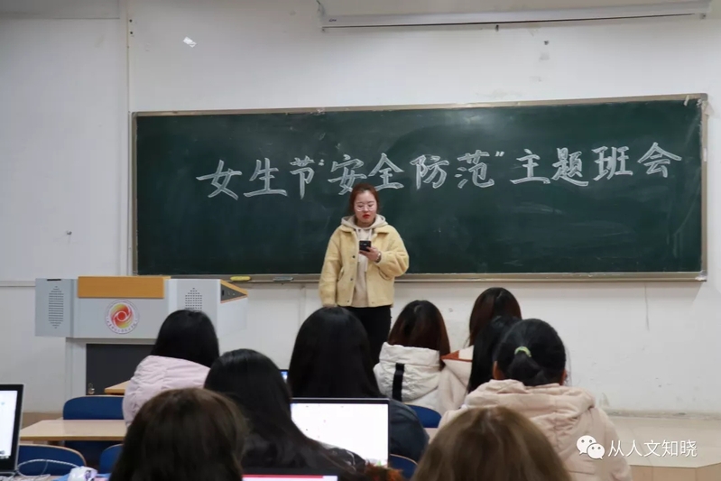 3月7日人文艺术学院召开女生节女生安全防范主题班会,意在提高女生基本安全防范意识。活动包括:学生代表讲述女生安全案例、普及女生安全防范知识、观看安全教育视频。班会开展过程中,同学们积极互动,踊跃发言,对案件进行讨论,通过具体事件得出最佳的解决方法,并结合自己身边事例提出自己的真挚意见。