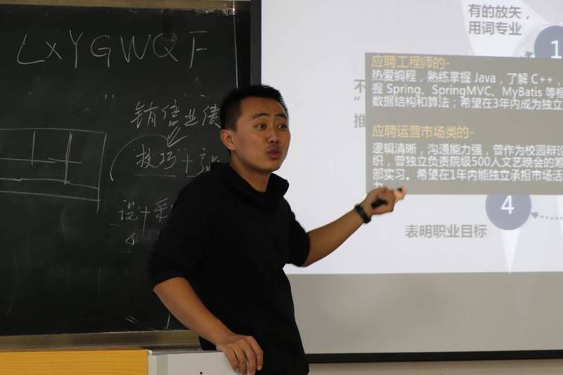 “简历制作”中的书写原则是简历制作中最应注重的一项。何堃老师对此概括为“一个中心,两个基本点,三个代表,四项基本原则”。其中,“一个中心”就是要有明确的职位要求;两个基本点概括为“简、差异化”;“三个代表”要求面试者要对面试具有“岗位认同,平等、热情”。四项基本原则为“真实、对应、匹配、量化”。何老师强调:书写简历要明确关键词,一岗一写切忌“海投”。 随后他为大家讲述了简历书写高效表达的“star”书写模型。其中“s”为情景,“t”为任务,“a”为行动,“r”为结果。情景是指工作经历在什么情况下进行;任务是具体的工作任务内容;行动,是对这个任务付出怎样的行动;结果是工作取得的结果 。何堃老师讲到,在“star”模型中,一要关键词加粗,将其与职位相匹配;二为量化内容,高效表达;三要控制篇幅;四要用到行业专业术语。他还要求同学们围绕职位要求进行最后的自我评价。