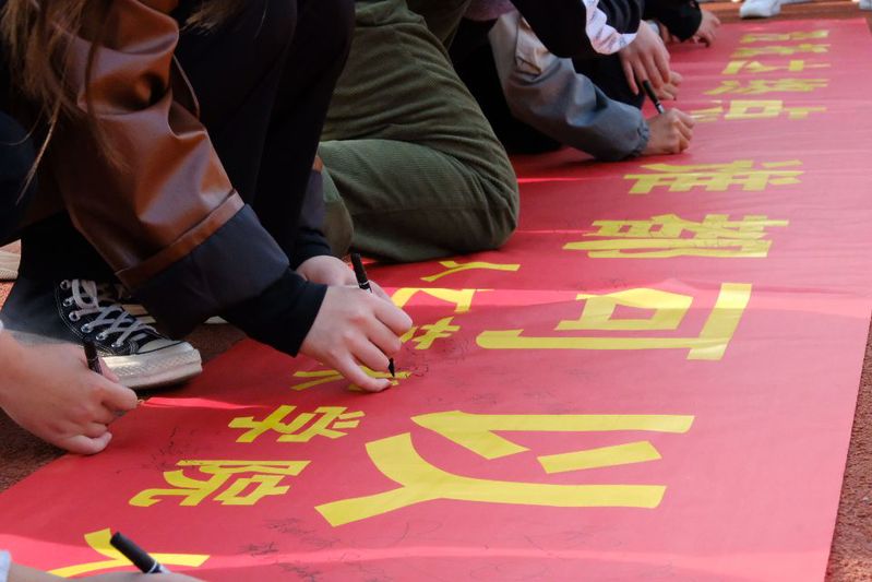 活动最后,同学们纷纷在横幅上留下了自己的名字并拍照留念。