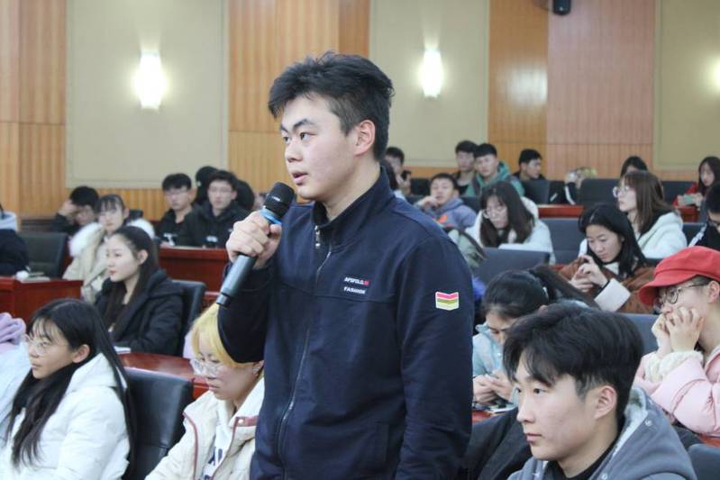 在孔老师幽默风趣的讲解中,讲座逐渐接近尾声。同学们就相关专业领域问题向孔老师提出疑问,并积极与孔老师交流玩游戏体会和游戏人物设计方面的注意事项。孔老师为同学们答疑解惑并送给大家四大法宝:二次元、IP探索、技术学习、创新。
