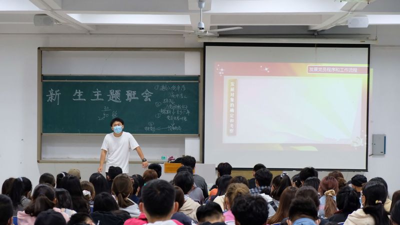 会议初,何堃老师详细介绍了党员发展流程及要求。在同学们提交入党申请书,成为入党申请人后,需保持学习成绩在班级前列并且没有挂科现象,在经过多次群众评选和支部推优后,符合条件者即可进入下一步的发展。同时,何堃老师强调了学习名次和学习成绩的重要性,他督促大家在未来的学习和发展中要以学习为重;指出所有的评选都有群众和团支部参与,所以申请入党的同学要注意团结同学,积累良好的群众基础。何堃老师提醒大家不管团员还是党员都需要有积极主动的姿态,要有模范带头的意识,认真完成团、党组织要求的各项工作。