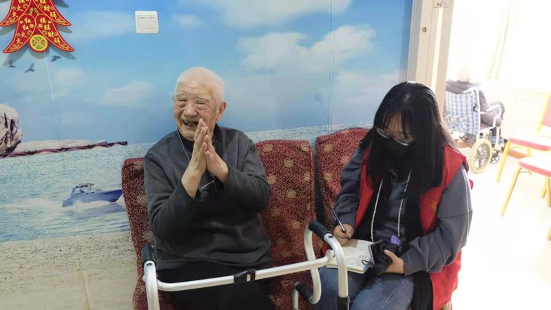 同学们的到来,为医养中心更增添了一份活力与朝气,爷爷奶奶也打开了他们尘封许久的话匣子。他们拉着志愿者的手,亲切地诉说着他们的过往。当志愿者问起他们床头摆放的照片时,他们自豪的讲起年轻时参加工作的辉煌成绩:有的是教师、有的是工人、有的是村支部书记。他们见证了时代的进步,为社会的发展奉献了属于他们的青春时光。与这些爷爷奶奶交流中,他们总会嘱咐志愿者们,要好好学习,美好生活靠自己,社会发展靠你们,青春正美好,也要实现自己的价值所在,不辜负国家栽培,不辜负父母养育。他们身边的陪护说:“这些老人很少聊得这样开心,你们的到来仿佛让他们又找回了年轻时的感觉。”