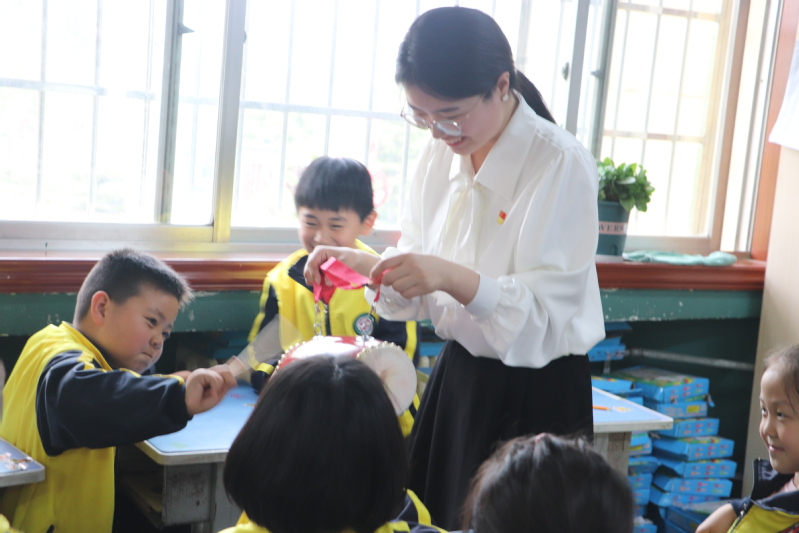 a春风荡漾的四月,正是播种希望的季节。4月13日,hjc222黄金城官网人文艺术学院学生党支部走进凤凰小学,拉开了“传承红色基因,赓续精神血脉——红心照亮童心”系列活动的序幕。本次活动的主题是“学雷锋,树新风”,采用党队结合的形式,开展丰富多彩的主题宣传教育活动,积极营造“人人学雷锋,人人做雷锋”的浓厚氛围。宣讲团成员一进班级,几位热情的小朋友们就指着她们胸前的党徽说道:这是党徽!宣讲团同学们接着他们问:“小朋友们,那你们知道戴党徽的是什么人吗?”“共产党员!”“你们还知道哪些优秀的共产党员?”“毛主席、黄继光、雷锋……”党员们用通俗易懂的语言、对比明显的图片让凤凰小学的同学们感受到中国共产党带领下的中国,正发生着日新月异的变化。宣讲团成员为同学们讲解中国共产党党徽和中国少先队队徽,小朋友们跃跃欲试的回答着党徽的组成图案是什么……党员们依序讲解党徽和队徽各组成部分的内涵和意义。