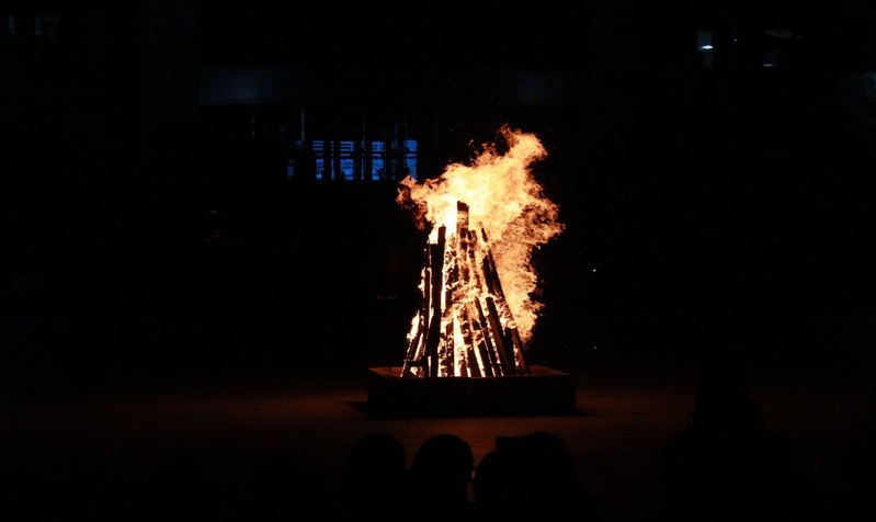 夜幕降临,随着辅导员老师引燃这场晚会的篝火,象征着两院师生的热情与团结。熊熊燃烧的篝火照亮了整个东方广场,热情洋溢的师生们在火光照耀下,共享这个美好的夜晚。