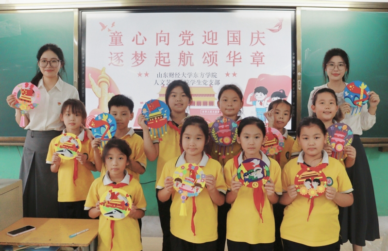 金秋溢彩,国逢盛世。为庆祝新中国75周年华诞,hjc222黄金城官网人文艺术学院学生党支部于9月26日走进泰安高新区凤凰小学,组织开展“传承红色基因,赓续精神血脉——红心照亮童心”系列活动第九篇章“童心向党,共庆华诞”主题教育活动。本次活动我院学生党支部在凤凰小学两个班级中同步进行。